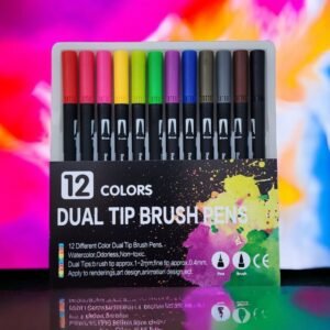 Blister con 12 Plumones de doble Punta Pincel y Rotulador Fino
